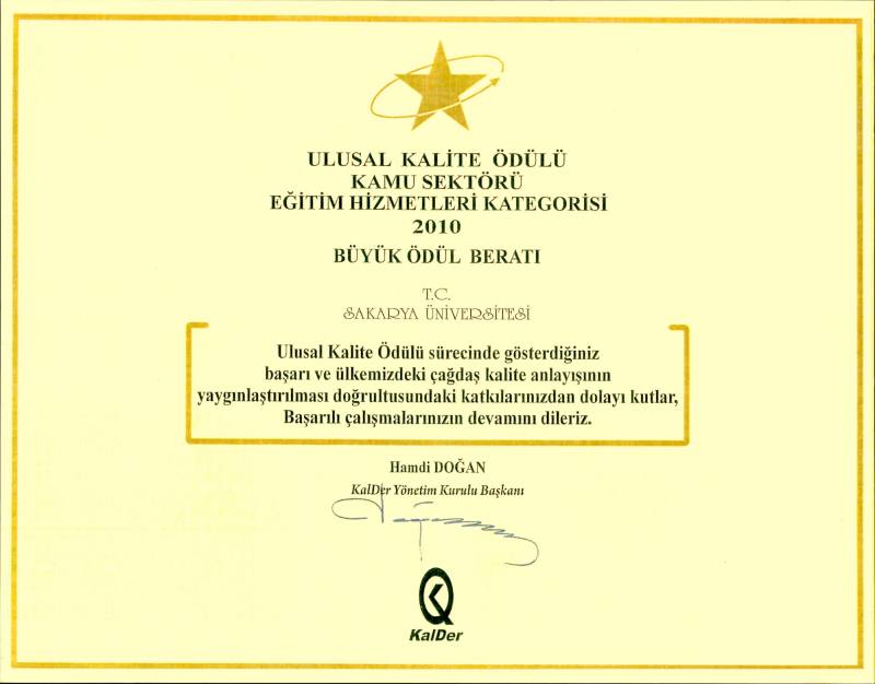 Ulusal Kalite Ödülü Kazanıldı.