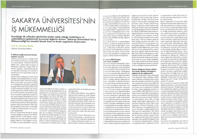 Haber SAU : Avrupa Kalite Yönetim Vakfı (EFQM) tarafından SAÜ’ye Avrupa Mükemmellik Ödülü Verildi