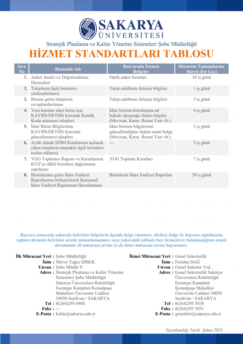 Stratejik Planlama ve Kalite Yönetim Sistemleri Şube Müdürlüğü
